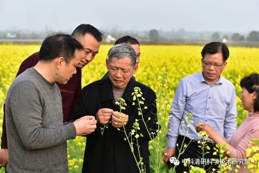 傅廷栋院士(左二)在油菜新品种品比试验与示范展示基地查看油菜长势 “我查阅资料,1929年,我国平均每一块田的面积只有5.7亩,平均每户是31.5亩;1999年,70年以后,我国每一块田的平均面积只有1.3亩,户平均是7.95亩。每一块面积减少了4倍,每一户的面积也减少了4倍。”傅廷栋认为,在这样分散、小规模的生产模式下,要想实行高效率的机械化生产是比较困难的,因此“根据中央、国家的政策,要加强土地流转或者是托管,发展合作社、家庭农场、种植大户、公司+农户等新型的经营主体,对发展油菜至关重要”。 傅廷栋从1985年到沙洋进行油菜科研工作以来,30多年间,几乎每年都到荆门沙洋进行油菜品种试验示范、推广和杂交种的制种,与当地干部群众建立了深厚的友谊,对沙洋有一份特殊的感情。“在沙洋举办过12届油菜花节,我每次都出席了,没有缺席过一次。真是:人生易老天难老,岁岁沙洋,今又沙洋,大地黄花分外香。”根据在荆门沙洋多年的实践经验,傅廷栋概括了提高种植油菜经济效益的主要途径:减投增效,机械化、轻简化、推广抗根肿病的油菜新品种等,减少劳力、肥料、农药等投入;质量增效,增加油菜籽单位面积产量、产油量,推广高油酸、高油份的品种等;扩能增效,充分发挥多功能利用的经济效益;加工增效,发展7D加工浓香菜籽油,饼粕精深加工等;品牌增效,如荆门荆花牌、农谷高油酸菜籽油的品牌创建等。 傅廷栋再次强调了新时期油菜产业发展的特色:以油为主,因地制宜,多功能(油用、菜用、花用、蜜用、饲用、肥用)利用相结合,栽培机械化、轻简化,提高效益,增加农民收入,促进美丽乡村建设。